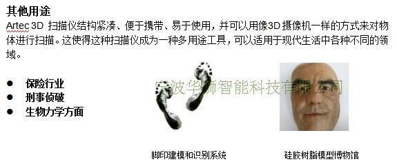 Artec Spider扫描仪采用了的高**技术。可以创造细节丰富的,由色彩丰富的小型物体组成的CG场景。Artec Spider 捕获色彩的能力为 24 bits 每像素 (bpp) 其分辨率为130万像素 (mp)。这些细节、模型纹理都可以被用在CG动画制作领域。